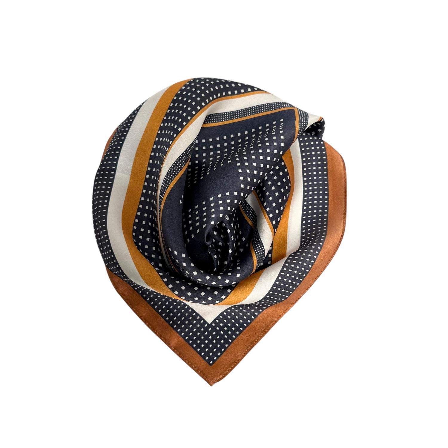 Silk Scarf 53x53 Ochre/Blue/White Dots