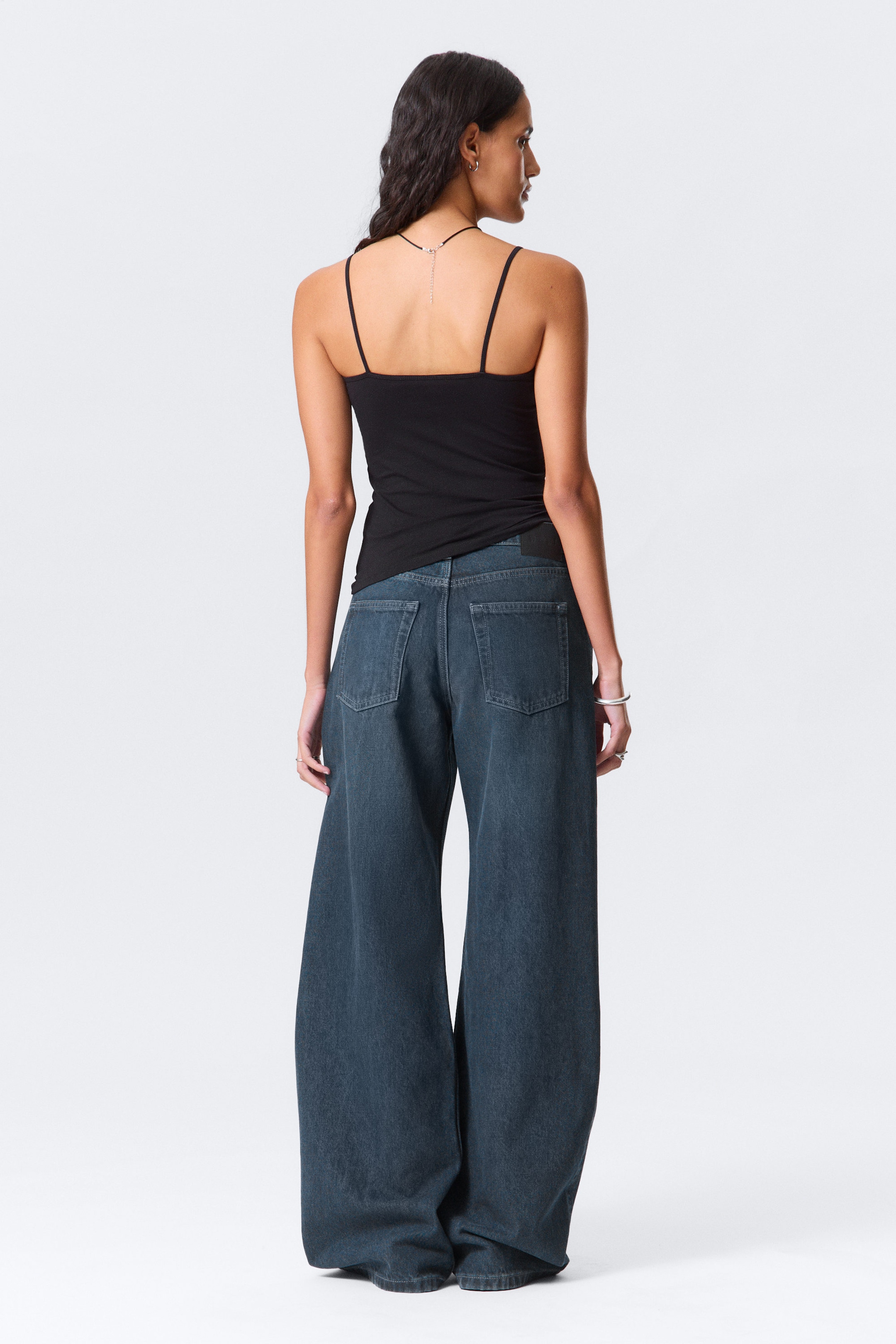 En tettsittende singlet laget av myk og elastisk bomullsjersey. Har tynne stropper og utringet hals.