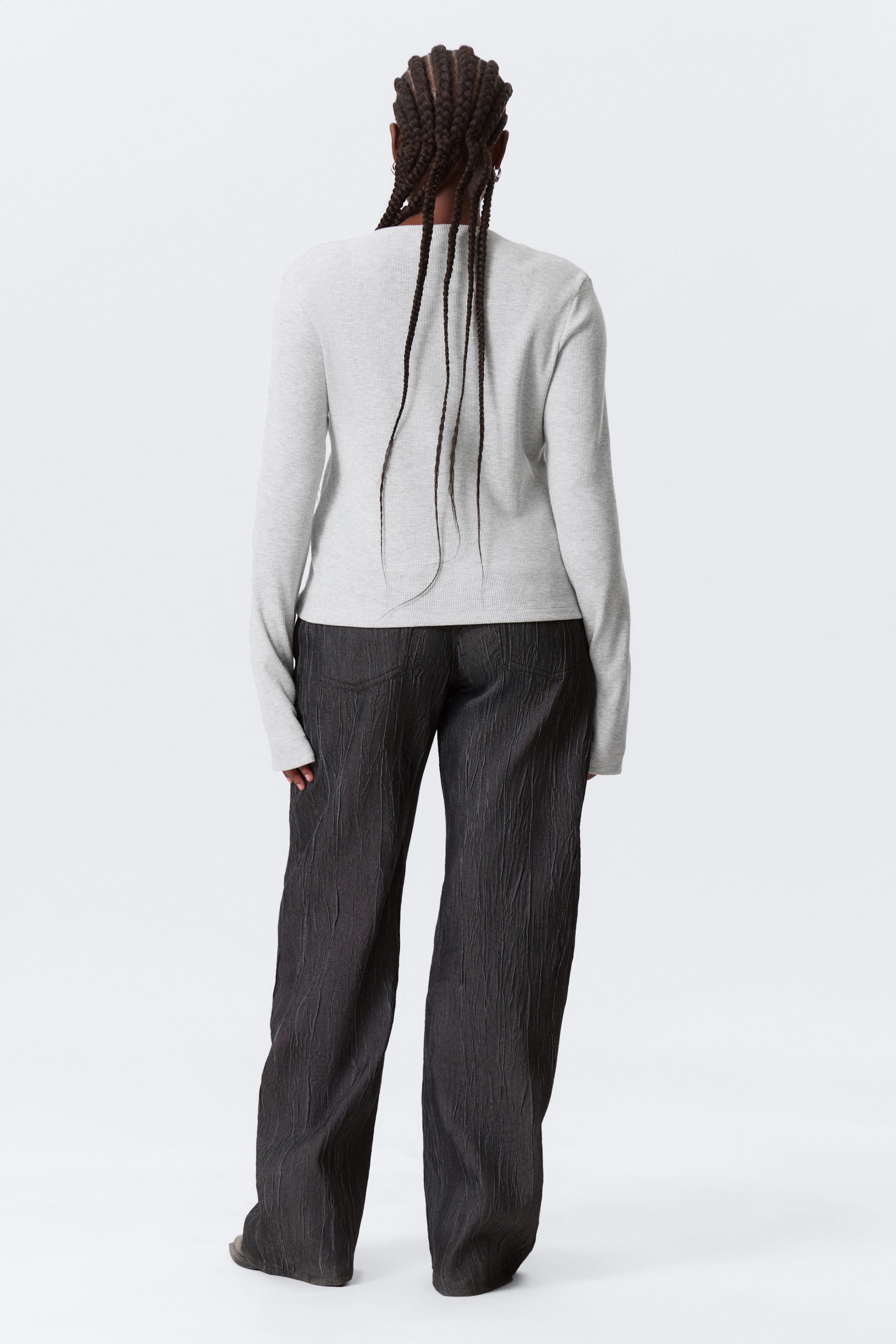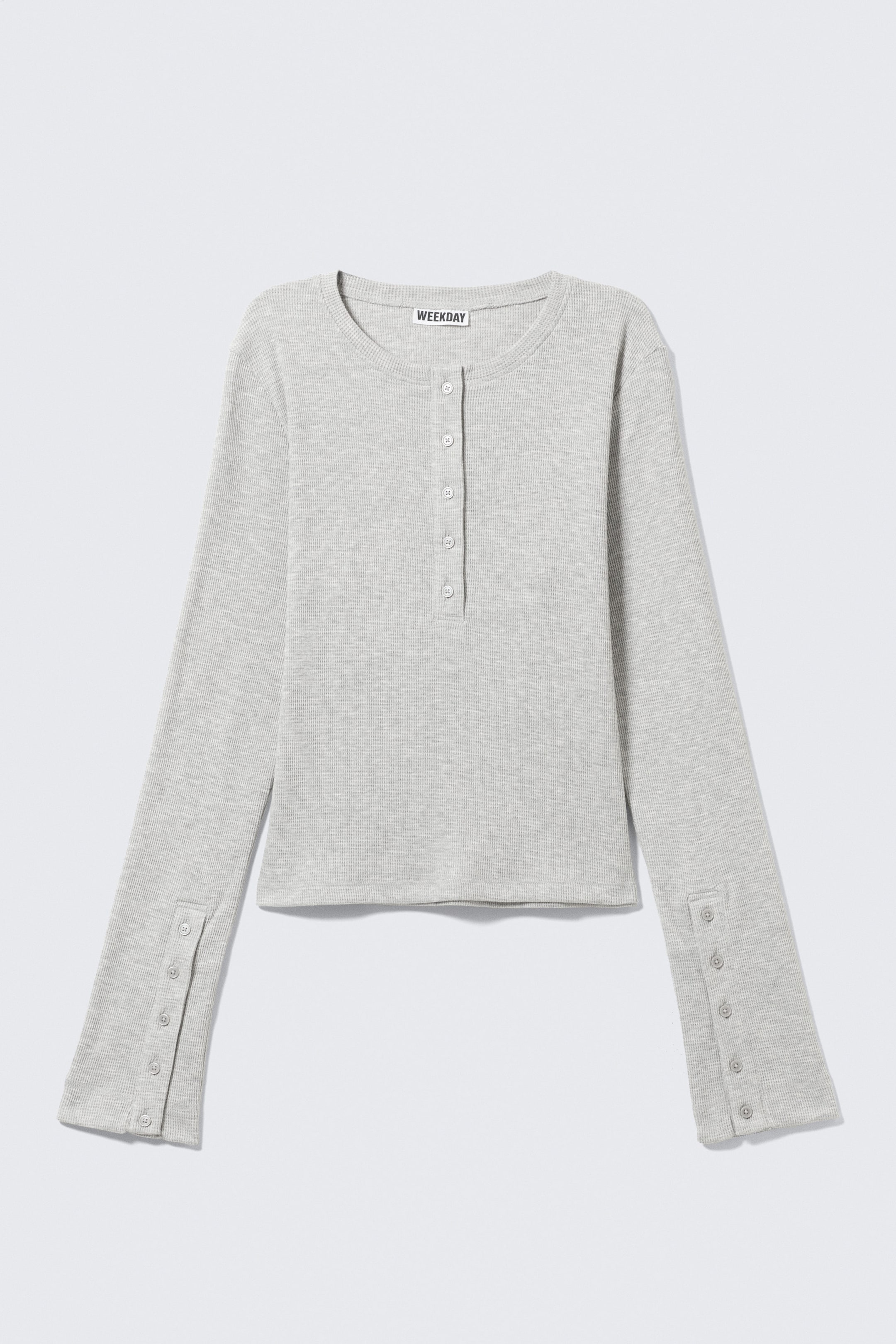 En langermet Henley-topp laget av elastisk bomull og resirkulert polyester. Har en myk vaffelstruktur, klassisk knappestolpe og mansjetter med knapper.