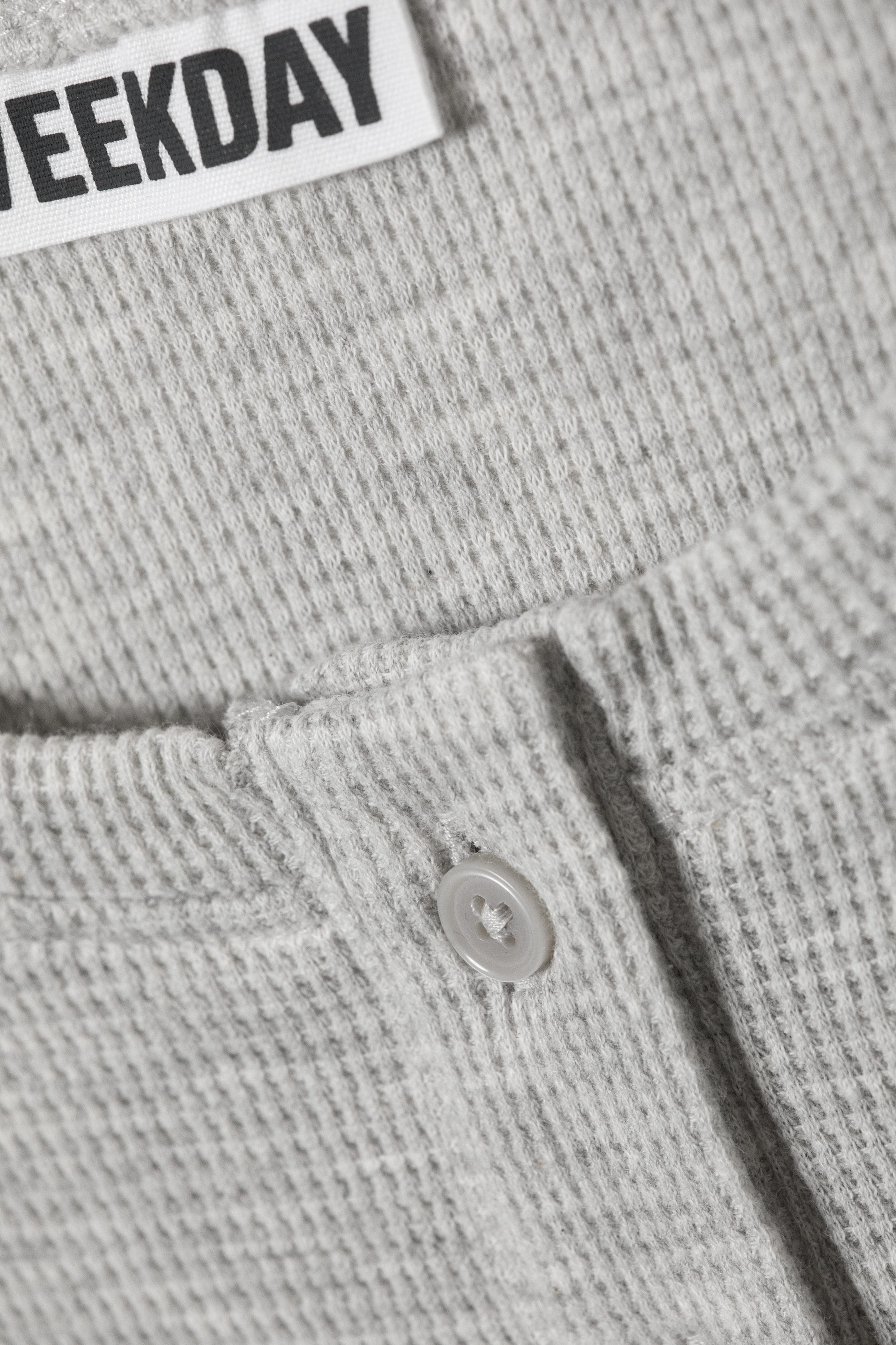 Myk vaffelstruktur. Knappestolpe og mansjetter med knapper. Elastisk stoff.