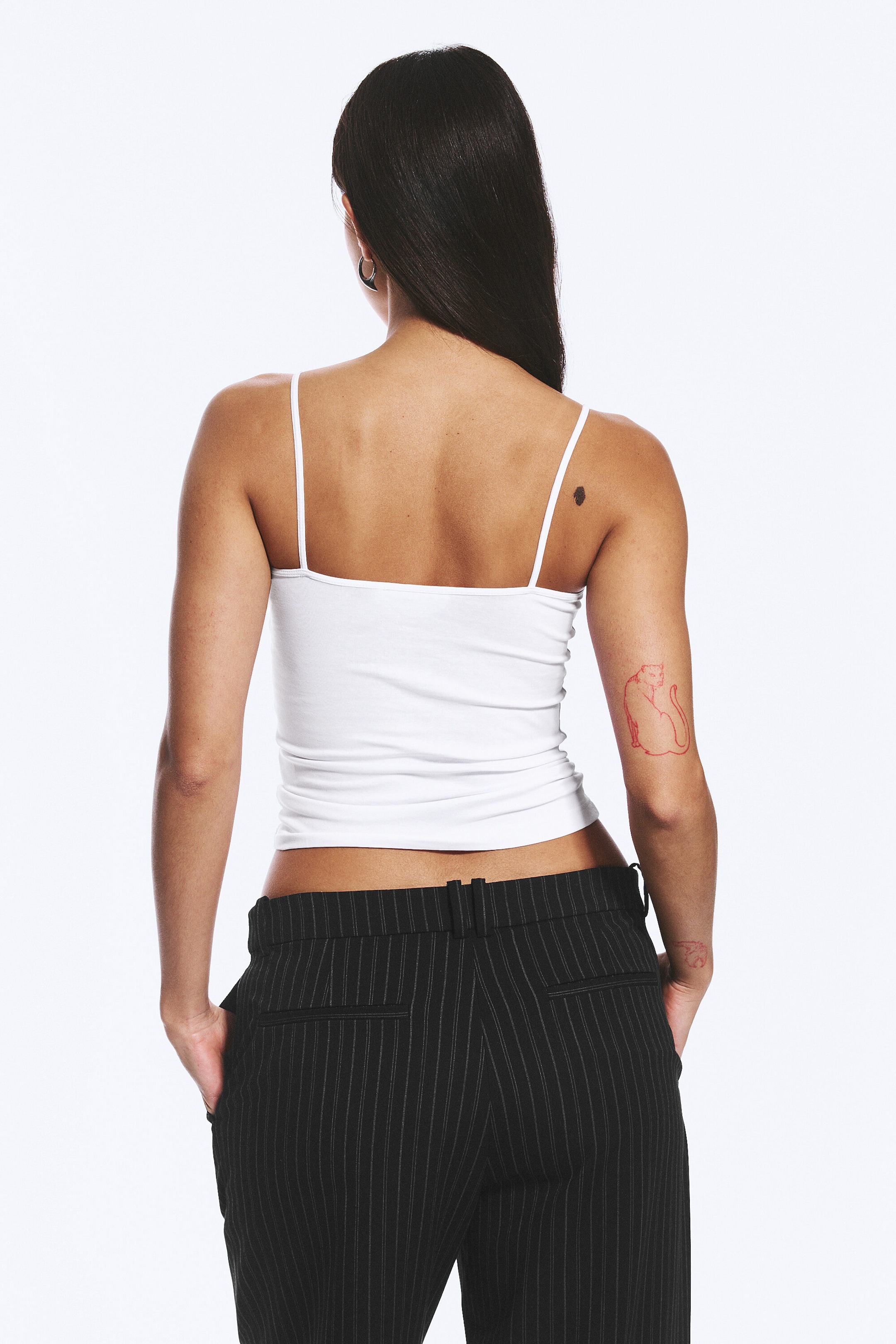 2-pakning. Spagettistropper. Smal, kroppsnær passform. Myk, elastisk bomull.