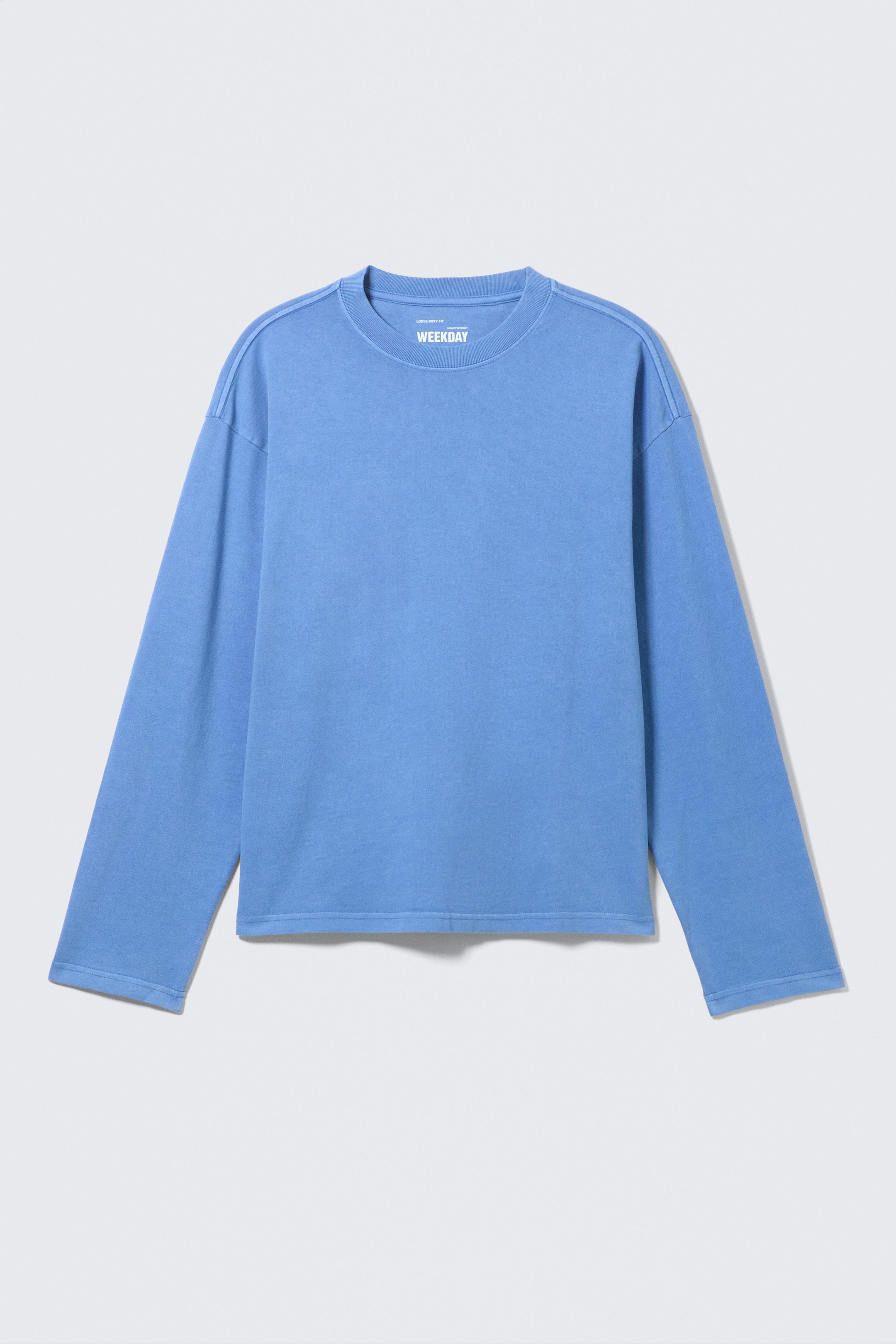 En løs, boxy langermet t-skjorte laget av myk bomull. Har rund hals, løs passform og rette kanter. Perfekt for lag-på-lag.
