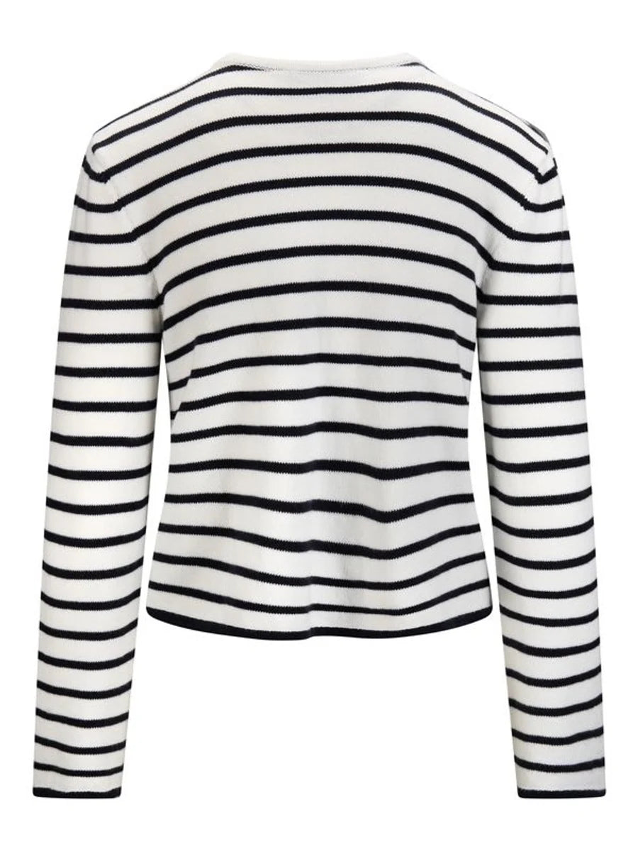 Lisa Cotton Cardigan er en tidløs strikket cardigan laget av 100 % organisk bomull. Den har en klassisk passform med stripete mønster og knappelukking foran med signaturknapper med monogram for et raffinert preg. En allsidig garderobeklassiker som kombinerer hverdagskomfort med subtile detaljer.